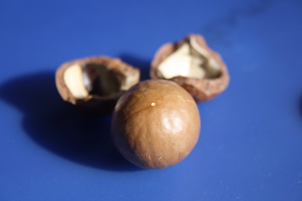 Good news. Even though the Macadamia nut is 80% fat, it is primarily monounsaturated fatty acid (“good” fat) which can lower heart disease risk and even cholesterol levels. Other health benefits include helping blood sugar levels and anemia (being high in iron and copper), great for brain health (due to various acids including Omega 9 fatty acids), the low amount carbohydrates make it a good weight loss aid, the high amount of fiber (both soluble and insoluble) helps with digestive health, they provide 3 minerals that support bone strength, and macadamias are supercharged with antioxidants. Another way to benefits from macadamia nut is to use it in oil form which can enhance hair growth and provide long term benefits for the skin when applied regularly.